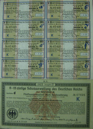 臺(tái)北市的蘇文朗,當(dāng)年祖父是士林紙廠的干部,他五歲時(shí),曾看過祖父拿出兩張鈔票大小的“彩色紙片”用來包煙草。當(dāng)時(shí)他好奇地纏著祖父問,這些“圖畫紙”是哪里來的。祖父抽了一口煙,緩緩地說:“這不是圖畫紙,是外國(guó)錢。”原來祖父當(dāng)年奉命要以馬克債券作為紙廠員工工資,但心軟的祖父預(yù)感這些“外國(guó)錢”兌換無門,因此家境富裕的他,干脆自掏腰包發(fā)薪水,而這些馬克債券就成了祖父嘴邊的彩色煙卷。