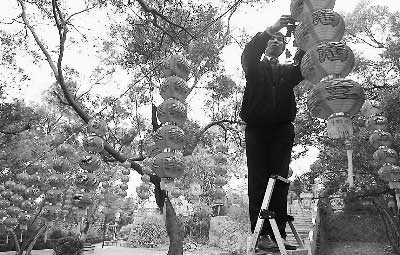 18日,在“兩馬鬧元宵”主燈區(qū)羅星塔公園內(nèi),以兩馬同樂和船政文化為主題的五個燈區(qū)已基本布置就緒。