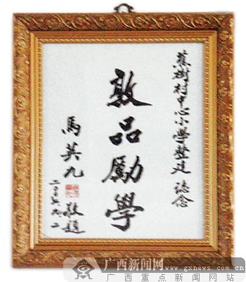 圖為馬英九給蕉樹小學(xué)的題詞。(圖:廣西新聞網(wǎng))