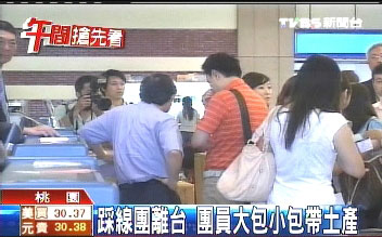 大陸踩線團結束在臺考察行程,今天(26日)上午搭機離開臺灣,帶回不少當地特產。(圖:臺灣TVBS)