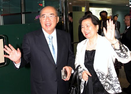吳伯雄啟程赴北京出席奧運(yùn)開幕式。(“中央社”圖)