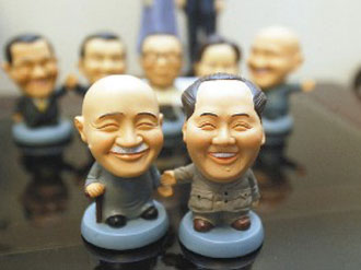 中新網(wǎng)10月27日電 兩岸交流進(jìn)一步加強(qiáng),國民黨黨史館與廠商合作訂制兩岸人物公仔,其中以蔣介石與毛澤東公仔銷售熱度最驚人,第一版已熱銷一空,正趕制第二版。