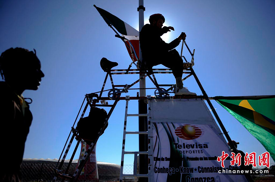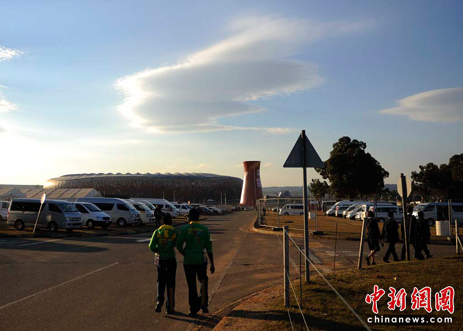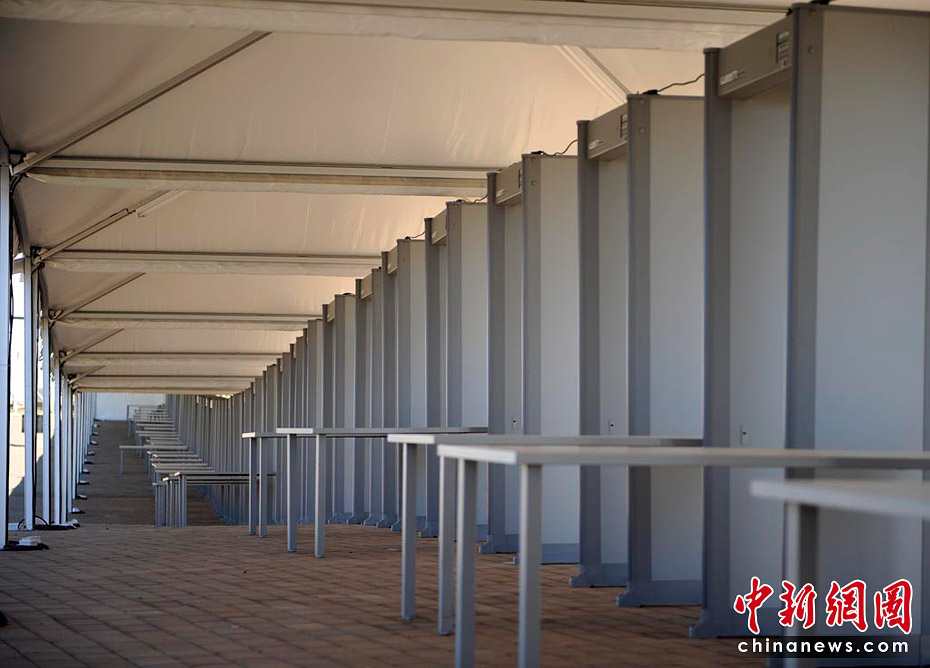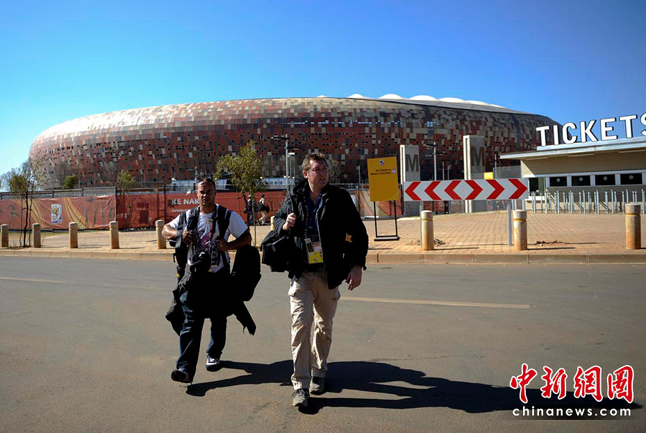 警察在足球城維護秩序。中新社記者 廖攀 攝