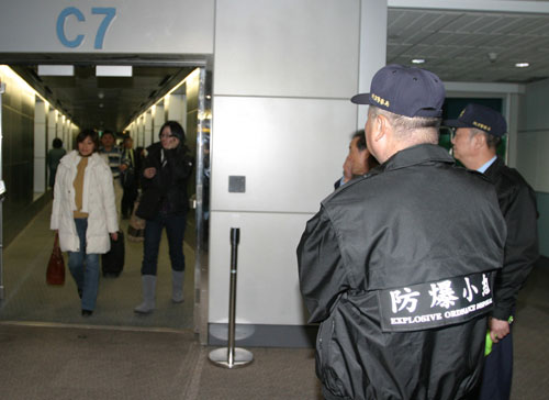 據“中央社”報道,這架兩岸包機預計在下午5時30分抵達桃園機場,不料在北京機場準備起飛時,經塔臺通報機上疑似有爆炸物,經仔細安檢后,證實為謊報事件,虛驚一場,但班機已經延誤近3小時。