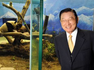 臺灣海基會董事長江丙坤6日前往臺北市立動物園,探視熊貓“團團”、“圓圓”。(圖片來源:中央社)
