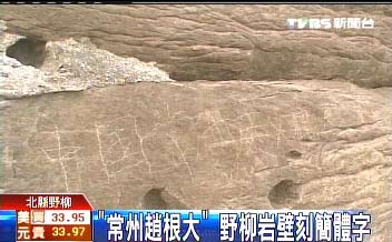 中新網3月31日電 有臺灣游客指控,在島內北海岸知名的野柳地質公園的巖壁上,被大陸觀光團成員刻上歪歪扭扭的簡體字留念。對此,管理人員呼吁要有公德心。