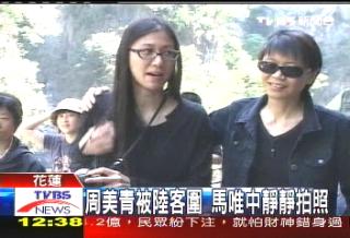 周美青一行人參觀了九曲洞、燕子口,也碰上了大陸觀光客,他們看到了周美青搶著合影留念,周美青也很配合,還和大家一起唱歌合照,展現隨和的一面。