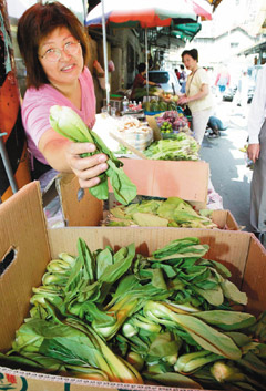 蘇嘉全前天一句“有五元的蔬菜為什么不去買”,惹惱了臺灣民眾。菜販昨天拿起青江菜秤重后表示,五元只能買到這樣,希望官員說話要小心。記者陳正興/攝影