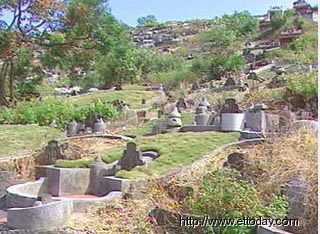 據(jù)臺灣東森新聞報(bào)道,臺北縣觀音山區(qū)公墓數(shù)以千計(jì)的往生者在這里安息,墓碑上頭的碑文記載著他們的身份以及來自何方,這橫書的兩個(gè)字,就是往生者的祖籍。