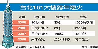 另外,從2004年一○一大樓首次施放跨火煙火至今,公部門并未補助任何經費,股東們也有意見,都是一○一大樓無法繼續施放跨年煙火的原因。