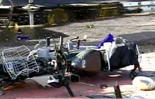 這起車禍發生在臺中縣沙鹿鎮中興路與沙田路口,一輛由許姓司機駕駛的拖板車在行經該路口時,突然失控往前沖撞,剛好有多輛摩托車停在路口等紅燈,由于毫無預警,4輛摩托車被撞得面目全非。