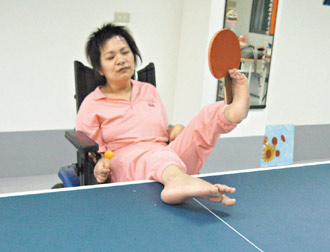 中新網12月25日電 臺灣女子黃美秀盡管罹患腦性麻痹,卻頑強地克服障礙,靠著靈活的“黃金左腳”學電腦、打乒乓球。她的名言是:“勇敢走出去,不要把自己當成不敢見人的魔鬼。”