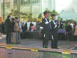 現(xiàn)場氣氛尷尬,因舞臺前主辦單位還安排了兩位真警察站崗,兩位警察見狀,一動也不動。記者問:“你看了覺得如何?”警察氣憤地說:“有很多人來問我,但那些一看就知道是假的。”據(jù)悉,最后該活動仍選出比基尼冠軍,巧的是,得獎的女子又是脫掉比基尼用手遮住重點(diǎn)的舞者。