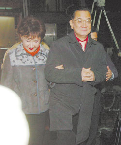 連戰兒媳婦蔡依珊12日順利生下一名男寶寶,母子均安,升格為爺爺及奶奶的連戰與連方瑀,晚間趕到醫院探視寶貝金孫。 中國時報圖