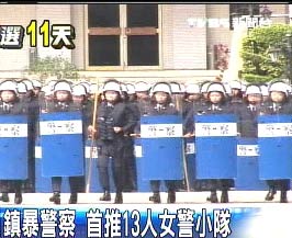 中新網3月11日電 臺灣地區領導人選舉只剩倒數11天。為防止任何民眾太過激情而發生意外,臺灣警政部門特地展示520人組成的鎮暴警隊,首次加入一支女性組成的小隊。