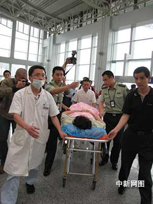 中新網(wǎng)5月20日電 在5.12汶川大地震中受傷的臺(tái)胞韓聲璧今天(20日)下午搭乘臺(tái)灣華信航空公司的包機(jī)返回臺(tái)灣。
