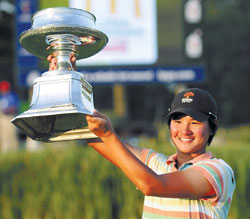 據“中央社”報道,曾雅妮今天興奮的指出,這是繼8日贏得女子職業高球錦標賽冠軍后的另一項殊榮,她并期待在圣地亞哥球場跟自己的偶像老虎伍茲見面。
