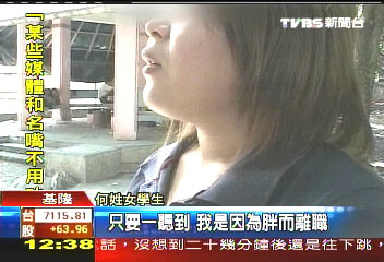 據(jù)臺(tái)灣TVBS報(bào)道,何姓女學(xué)生原本就對(duì)身材有點(diǎn)自卑,在工作上更加努力;但她說,這個(gè)月4日接到店長(zhǎng)來電,暗示她“身高減掉110還是超重,可能會(huì)被裁員”;女學(xué)生傷心痛哭,沒想到圓潤(rùn)體型會(huì)丟了工作。