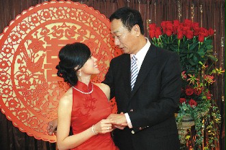 中新網7月24日電 臺灣科技首富、鴻海董事長郭臺銘23日與未婚妻曾馨瑩在臺北君悅飯店舉行訂婚儀式,席開四桌宴請親友,極為低調。與會的國民黨秘書長吳敦義轉述,筵席上,郭臺銘宣布已征得曾馨瑩簽字同意,將捐出九成財產做公益,獲得全場熱烈掌聲。