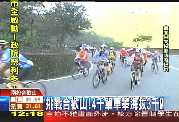 據(jù)臺灣TVBS報道,4000多輛自行車挑戰(zhàn)合歡山,出了市區(qū),上山路全是難關(guān)。合歡山公路超大斜坡,開車的只要輕踩油門,但這些自行車騎士踩踏板的頻率已經(jīng)像在跑步,卻只能緩慢爬升。