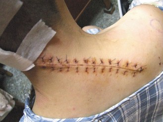 被砍殺的被害女子,背部、頸部的傷口長達30公分,讓人怵目心驚。(圖片來源:臺灣《聯合報》)