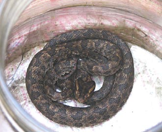 臺一男子在住家處抓到的含劇毒的龜殼花。(圖片來源:臺灣《聯合報》)