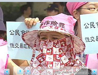 中新網10月30日電 臺北市廢公娼已經有7年,但支持公娼工作權的“日日春協會”,多年來都訴求要開放娼妓合法化。日日春協會會員30日來到“行政院”舉牌抗議,強調既然全世界都無法完全禁止嫖妓行為,當局何不開放合法,讓性工作者有條生路可走。