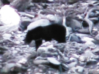 畫面中的臺灣黑熊,在胸、頸處有V字形白紋,沿著河床慢慢走,似乎并沒感覺到遠方有人注視它,它全程都沒有停下來。他說“無法好好拉近拍攝,還是有些遺憾”。