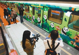 中新網(wǎng)12月26日電 據(jù)臺灣《聯(lián)合報》報道,臺北捷運南港線東延段南港站昨天(25日)下午啟用通車,站內六幅大型幾米畫作,吸引許多民眾爭睹,同時啟動的可愛熊貓列車也讓乘客耳目一新。