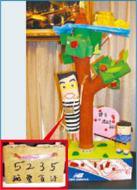 中新網1月6日電 高雄應用科技大學舉辦創意環保童話公仔競賽,原訴求童話可愛風格,但一組嘲諷陳水扁弊案的《杰克與櫻桃豆》創作,讓阿扁穿上編號“5235(諧音‘我愛貪污’”囚衣,意外拿下銅牌。