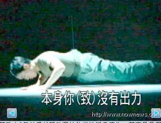 中新網(wǎng)1月21日電 據(jù)臺灣“今日新聞”報道,陳水扁之子陳致中9年前為父親助選拍的伏地挺身(俯臥撐)廣告,其實是吊鋼絲完成的,當(dāng)年幫陳致中吊鋼絲的師傅直接點明陳致中雙手根本沒有力,才要靠吊鋼絲來輔助。