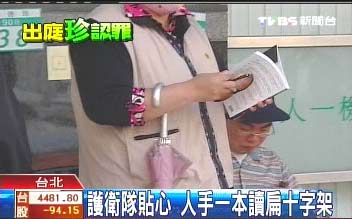 中新網(wǎng)2月12日電 臺灣TVBS12日報(bào)道說,做陳幸妤以及扁家的護(hù)衛(wèi)隊(duì)真的“太窩心”,除了阻隔記者的問話,還得研讀起阿扁著作“臺灣的十字架”。