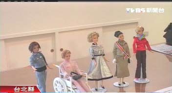特色最不明顯的是曾文惠,志工翻閱照片,端詳許久,研究半天,最后以“高貴”為其主題,紅色套裝一上身,就有了架勢(shì),但和其它夫人芭比相較,還是遜了一點(diǎn)。