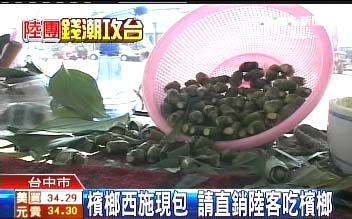 據悉,屆時會場將擺30多個攤位,全部都是臺灣地道小吃,連檳榔攤都入列,就是要讓大陸游客嚼嚼看“滿嘴紅紅”的滋味感受,以體驗一下這種臺灣味。