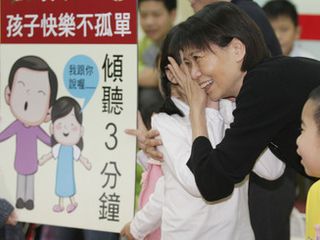 臺“兒童福利聯盟文教基金會”今天上午舉辦“臺灣兒童快樂生活大調查”發表記者會,邀請周美青到場與20多名國小學童對談,由周美青與基金會董事長馮燕擔任老師,傾聽小朋友心聲,并詢問小朋友課業、休閑及困擾等問題,小朋友答詢活潑可愛,過程中歡笑聲不斷。