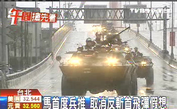 凌晨5點,天色才剛亮起,負責保衛博愛特區的憲兵202指揮部大批甲車緩緩開出,第二輛六輪甲車正是到中興寓所護送馬英九的萬鈞車,這是馬英九上任后,首度主持兵推。