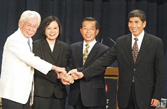 前“總統(tǒng)府國策顧問”黃昆虎昨天中午邀請(qǐng)“考試院長”姚嘉文、“立委”王幸男等人,與辜寬敏、蔡同榮協(xié)調(diào),由黨員強(qiáng)力要求兩人合作,最后協(xié)調(diào)出現(xiàn)契機(jī),蔡同榮決定退選。蔡同榮指出,他與另一位黨主席候選人辜寬敏路線相近,辜寬敏堅(jiān)持不愿意退,因此他決定退選,全力支持辜寬敏。辜蔡兩人今天上午十點(diǎn)在臺(tái)大校友會(huì)館召開者會(huì)對(duì)外說明,但巧合的是,蔡英文在同時(shí)間、同樣在臺(tái)大校友會(huì)館,舉行與公民團(tuán)體對(duì)話記者會(huì)。