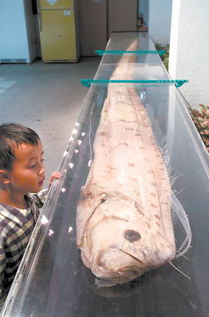 中新網(wǎng)10月22日電 據(jù)臺灣《中國時報》報道,臺灣“中研院”二十日開放院區(qū)供民眾參觀,許多該院特有的研究“寶物”引人注目,一位小朋友就緊盯生物多樣性博物館標(biāo)本“皇帶魚”直直看,不禁問:天啊,這是從哪來的呢?