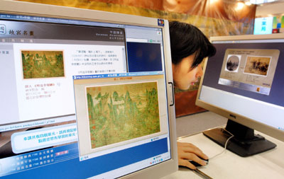 中新網10月23日電 據“中央社”報道,數字學習科技成果展二十三日在臺北世貿展覽館一館舉行。圖為臺北故宮博物院展出在線名畫欣賞教學。