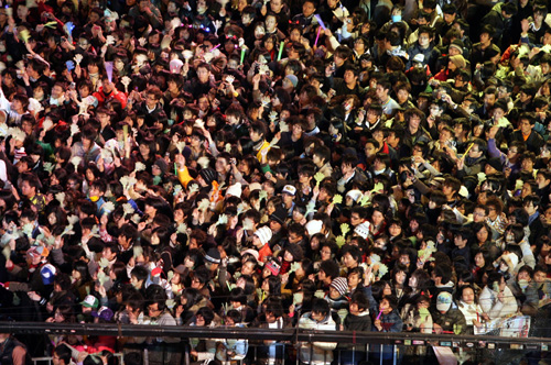 臺(tái)北市政府前廣場(chǎng)十二月三十一日舉辦“2008臺(tái)北最HIGH新年城”跨年晚會(huì),炫麗的舞臺(tái)燈光和精彩的藝人表演,吸引上萬的民眾一起前來參加跨年晚會(huì)。(“中央社”圖;張皓安攝)