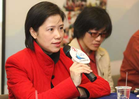 嫁到臺(tái)灣的大陸配偶袁小姐(左)二十九日在馬英九蕭萬(wàn)長(zhǎng)競(jìng)選總部表示,謝長(zhǎng)廷的“豬哥”說(shuō),讓她非常擔(dān)心小朋友就學(xué)后會(huì)不會(huì)受到異樣的眼光,希望政治人物要謹(jǐn)言慎行。“中央社”圖 謝佳璋 攝