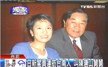 中新網(wǎng)6月12日電 據(jù)臺灣TVBS報道,日本新內(nèi)閣里最年輕女閣員蓮舫,不但有華裔背景,而且她還要叫陳水扁任內(nèi)秘書長陳唐山“舅舅”。蓮舫其實是陳唐山姐夫弟弟的女兒,她的中文原名叫做謝蓮舫,算是臺南鹽水人,后來蓮舫才跟著父親謝哲信移民日本;陳唐山說,他這幾年跟蓮舫見過幾次面,而且蓮舫還會講簡單的閩南語和普通話。