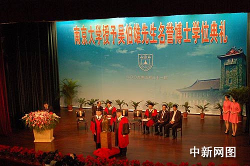 中新網南京5月31日電 中國國民黨主席吳伯雄今天上午在南京大學獲授榮譽法學博士學位,并發表答謝演講。