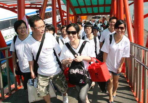 中新網8月26日電 今天是七夕情人節,200多名廈門男女青年組團,以“小三通”為鵲橋,飄洋過海到金門,參加海峽兩岸七夕牽手會活動,尋覓有情人。