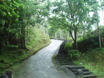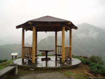 一路上爬,到達(dá)遠(yuǎn)高處,山路又盤而向下,然后再上盤往另一高崗。抵達(dá)另一高處時(shí),路旁設(shè)有一座雨量測(cè)量站,這里也是車道的終點(diǎn),前方不遠(yuǎn)處有一涼亭。由水柳腳形象商圈的牌樓至涼亭,約1.2公里,路程約25分鐘。