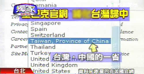 報道稱,上美國星巴克網站搜索在臺灣的分店,不管在高雄、新竹、嘉義還是臺北的分店,都加注了一排字“TAIWAN,PROVICE OF CHINA”(臺灣,中國的一省)。