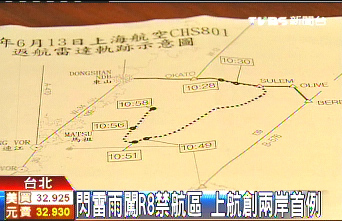 中新網6月16日電 據臺灣TVBS報道,兩岸直航以來發生第一次霸機事件,臺當局民航部門拿出天氣惡劣的數據替FM801班機背書,不過但同一份數據卻掀開一個不能說的秘密,該班機“抄快捷方式”返航上海,回程穿越敏感的“R8禁航區”,成為兩岸直航客機飛越軍事空管區首例。