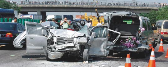 中新網(wǎng)10月16日電 據(jù)臺(tái)灣《聯(lián)合報(bào)》報(bào)道,臺(tái)灣中山高彰化路段十五日發(fā)生四死五傷重大車(chē)禍,一輛滿(mǎn)載丁烷的化學(xué)槽車(chē),前晚近十時(shí)為閃避爆胎前車(chē)翻覆,北上車(chē)道大塞車(chē)至昨天近中午時(shí),一輛客運(yùn)從后方高速?zèng)_撞車(chē)陣,連環(huán)撞爛十四輛車(chē),現(xiàn)場(chǎng)慘不忍睹。