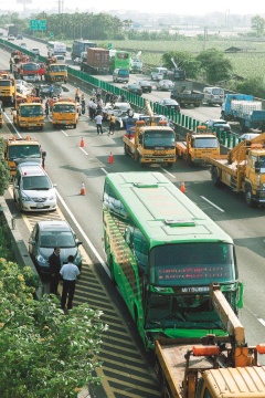 接連兩起車(chē)禍,回堵車(chē)陣更嚴(yán)重,事故處理前后長(zhǎng)達(dá)十九小時(shí)。參與槽車(chē)處理的人員指出,毒災(zāi)處理安全第一,不能像一般車(chē)禍求快,耗費(fèi)時(shí)間是必然的。