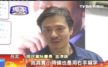 中新網2月20日電 據臺灣TVBS報道,美國總統奧巴馬等都是左撇子一族,反觀臺灣政壇幾乎找不到左撇子政治人物,但被認為作風獨特的國民黨秘書長金溥聰正是個左撇子。他透露,年幼時曾在世俗眼光下使用右手,直到右手不小心摔斷才改回左撇子本色。
